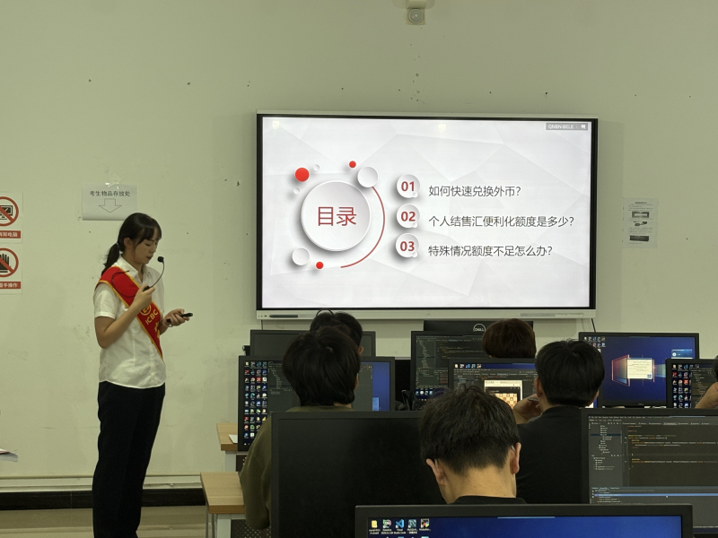 宣讲上门送新知,服务升级入人心。针对六盘水师范学院有留学或出境旅游计划的学生群体,该行组织外汇人员进校宣讲,普及外币兑换、结售汇、跨境转账操作及跨境诈骗识别等实用金融知识,旨在协助他们完成行前金融规划。